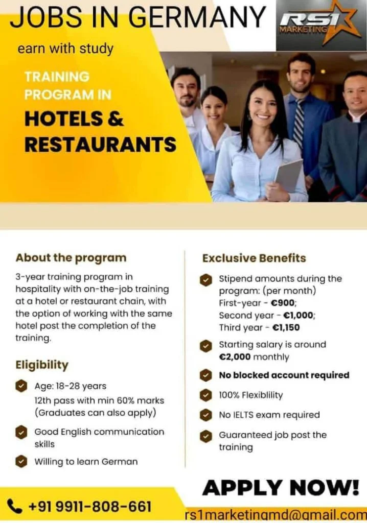 At RS1 Marketing, we believe in building long-lasting relationships with our clients based on trust, transparency, and integrity. Our dedicated team is committed to understanding your unique needs and providing personalized solutions that exceed your expectations. We value your time, and our efficient processes ensure a hassle-free experience for all our clients. Earn while you Study from 1st Day in Germany No IELTS Required German Level Course upto B1 Level
